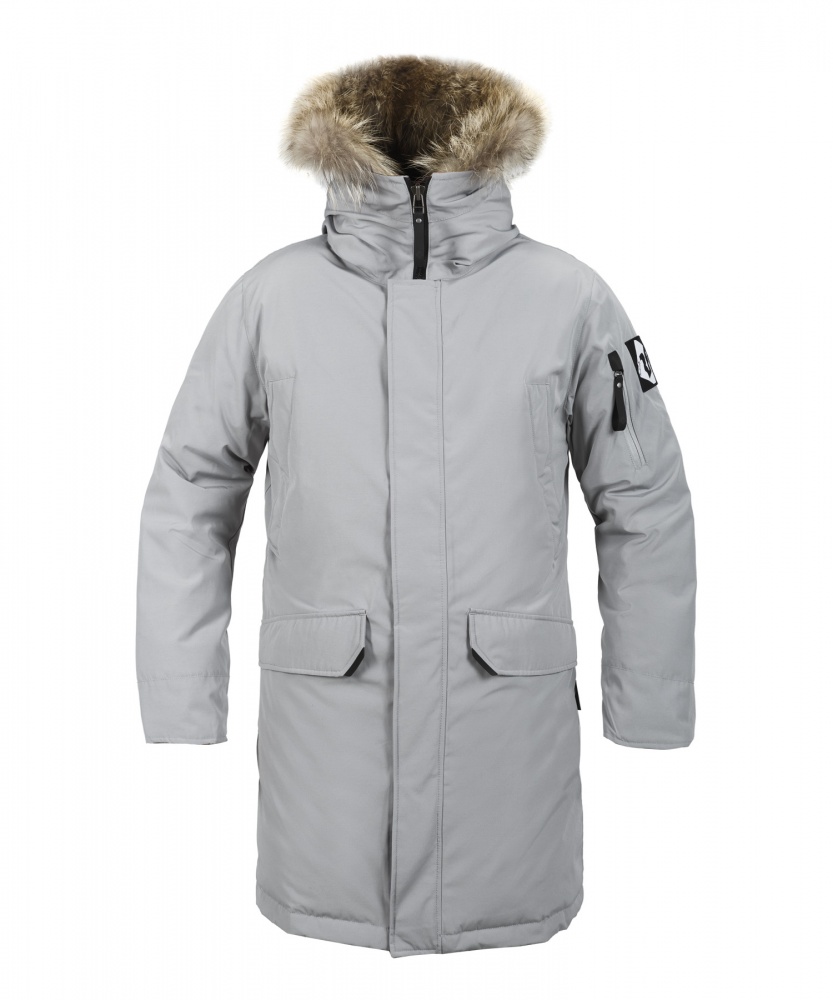 - капюшон с регулировкой по высоте и с опушкой из меха енота, застегивающийся в «трубу» и изолирующий лицо от ветра