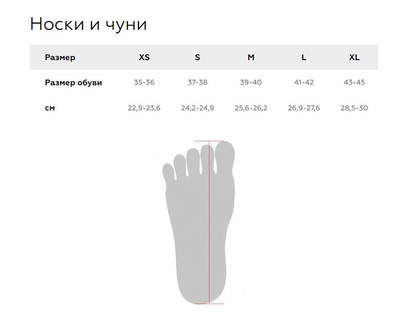 Носки выпускаются в размерах: XS (35-36), S (37-38), M (39-40), L (41-42), XL (43-45).