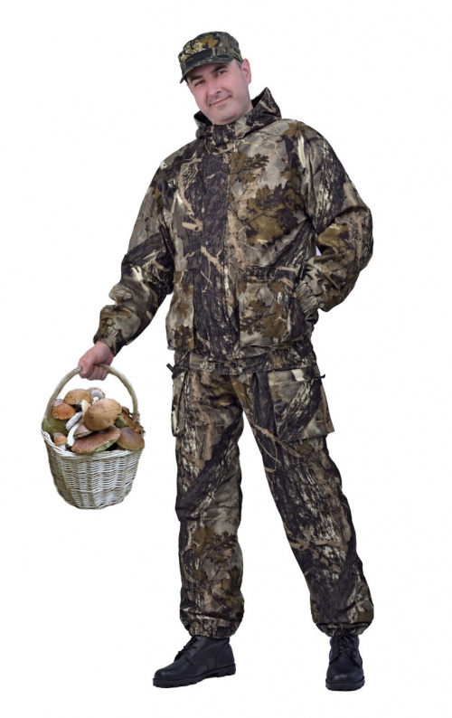 Камуфлированный универсальный демисезонный костюм для охоты, рыбалки и активного отдыха. Состоит из укороченной куртки с капюшоном и брюк.Куртка: