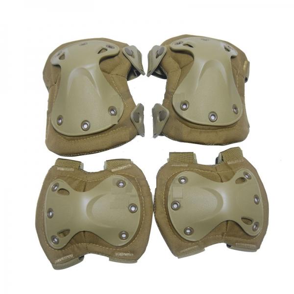 Для крепления на теле используются эластичные ремни с регулируемой длиной и застежками типа велкро (липучка), размер комплекта - универсальный. Форма защитных чашечек - Х-образная. Наружная поверхность выполнена из пластика на основе термопластичного полиуретана, внутри содержится мягкий наполнитель - пеноматериал EVA, обшитый сетчатой нейлоновой тканью.
