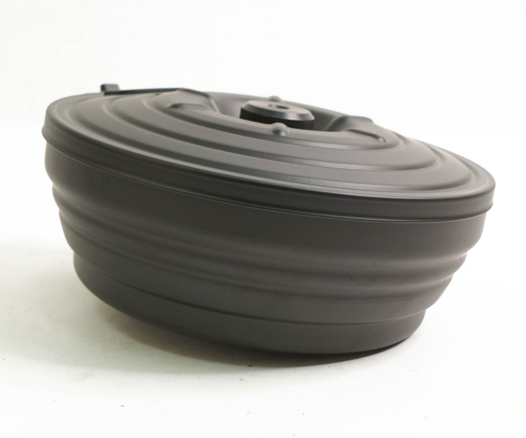 Внешне по форме напоминает усечённый конус. Выполнен в чёрном цвете, из металла, делая магазин очень прочным.