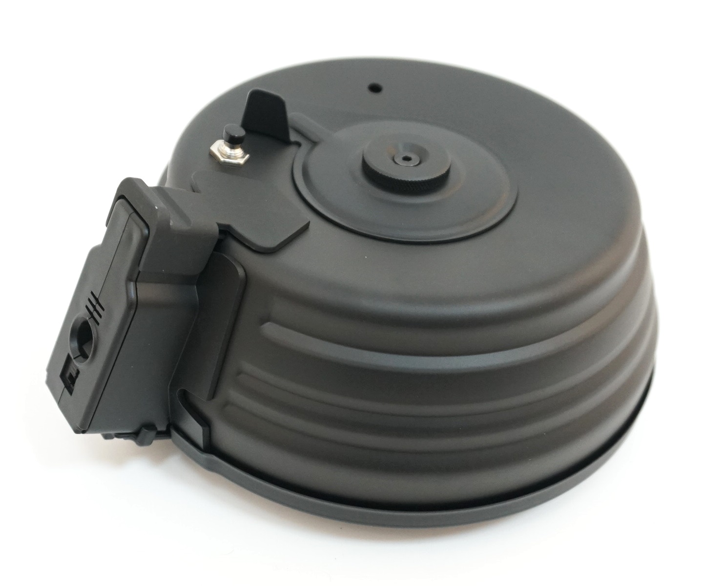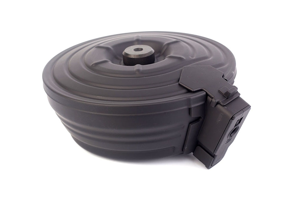 Магазин сделан производителем CYMA. Питается от элементов АА. Механизм подачи обеспечивает бесперебойность подачи шаров, понижая потерю времени при смене магазина. Цвет магазина-черный, все элементы изготовлены из металла. Отличие данной модели в том, что рядом с кнопкой активации подачи шаров находится микрофон, который сам запускает подкрутку магазина, если улавливает громкие звуки рядом. Например, стрельбу из привода. Данное изобретение позволяет вести бой не отвлекаясь от цели и не меняя положение рук на приводе.