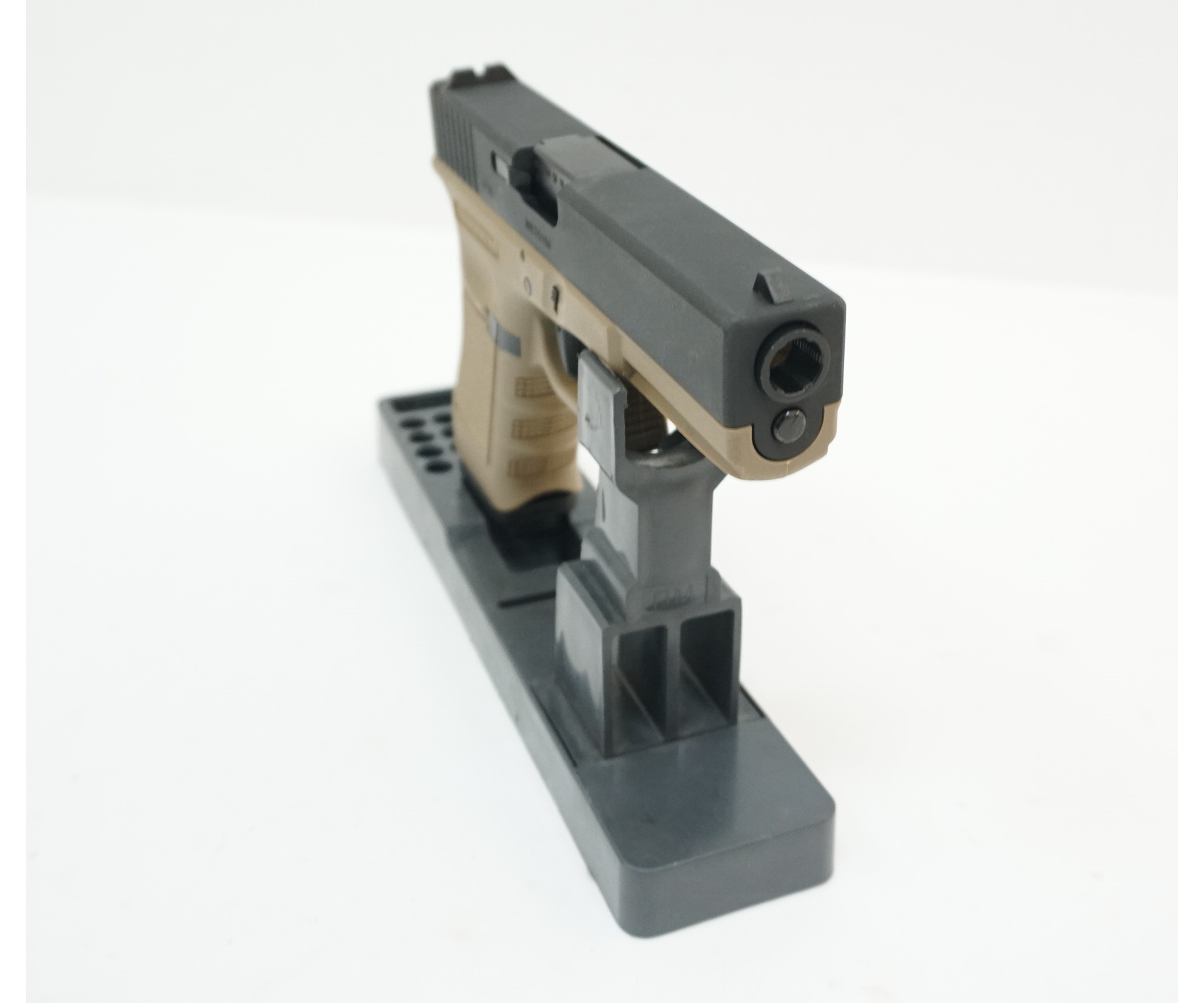 Рамка выполнена из пластика, цвет - песочный (tan); затворная рама из металла, цвет - черный. В качестве источника энергии страйкбольный пистолет ВЕ-Г001А-ТАН Глок-17 использует грингаз (green gas). Магазин пистолета - полноразмерный, его вместимость - 24 шара.