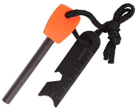 Небольшой мультитул на прочном шнуре - представляет собой кресало, линейку с разметкой на 5 см и гаечный ключ 7-8 мм