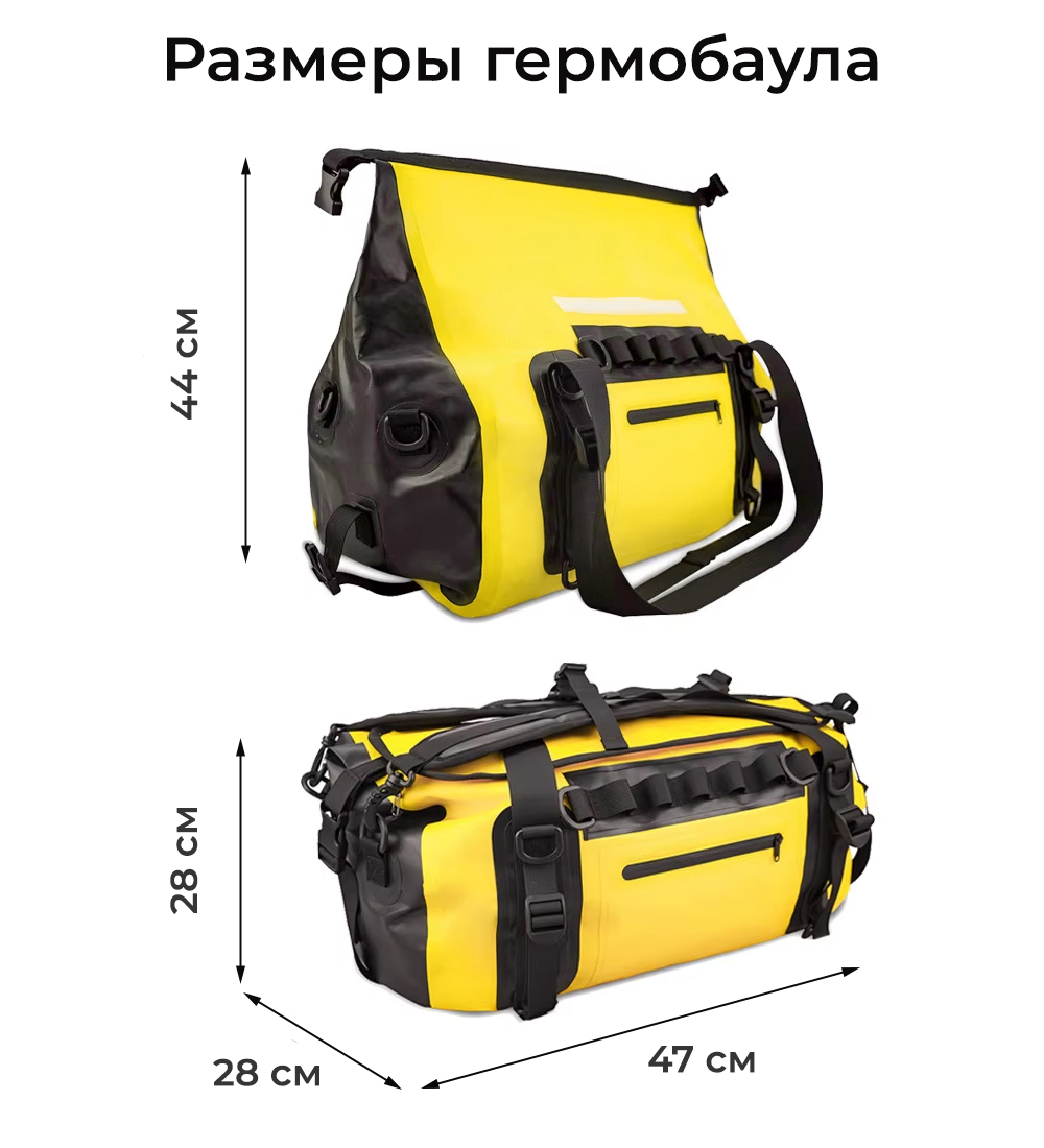 Водонепроницаемый баул надежно защитит вещи от воды на сплаве, велопоходе, на мотовыездах, в лесу или горах, на рыбалке, в путешествии или при повседневном городском использовании. Помимо качества материалов и исполнения баул имеет отличный внешний вид для повседневного использования в качестве городской непромокаемой сумки. Материал долговечен и устойчив к износу.