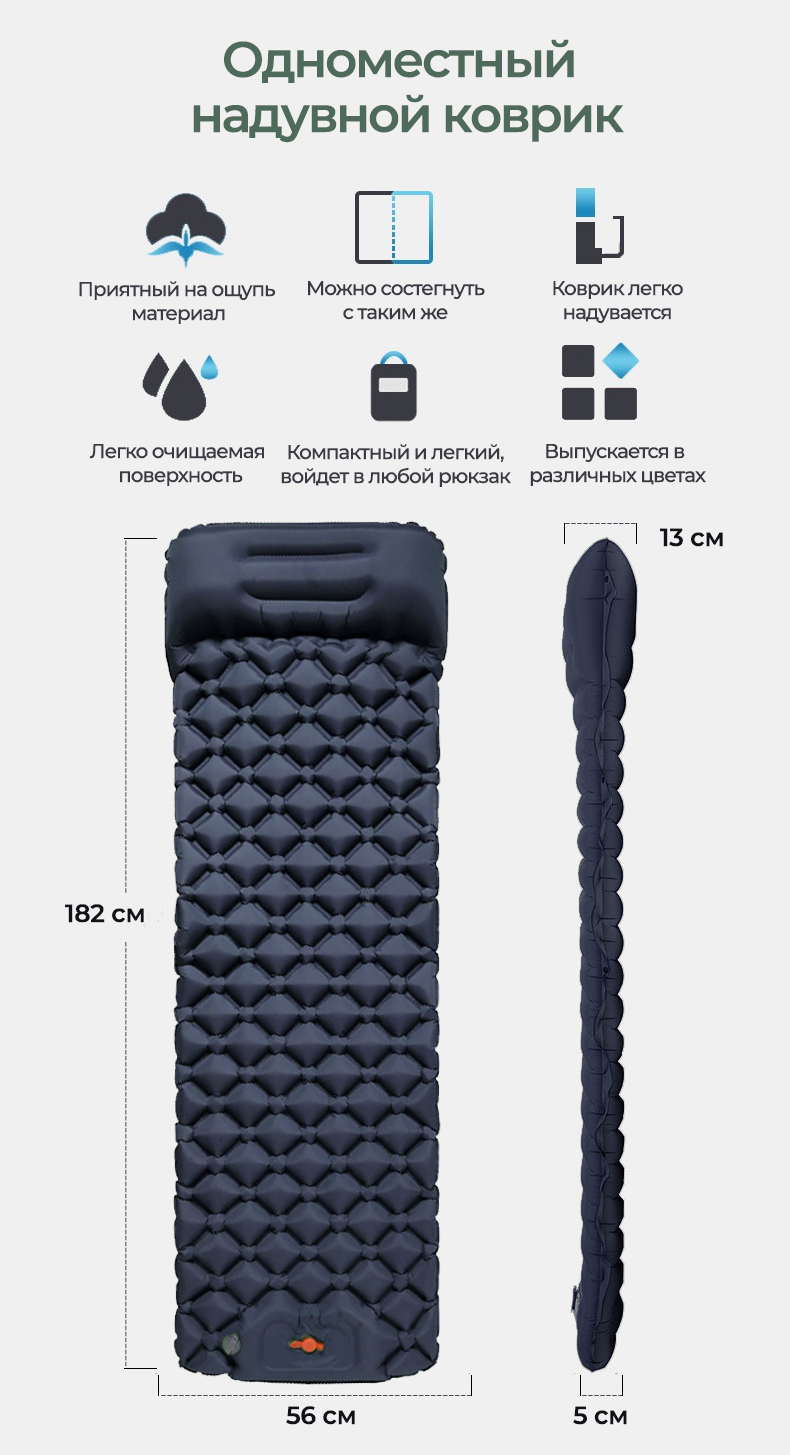 - Новый двойной клапан для более быстрого надувания-сдувания ковра.