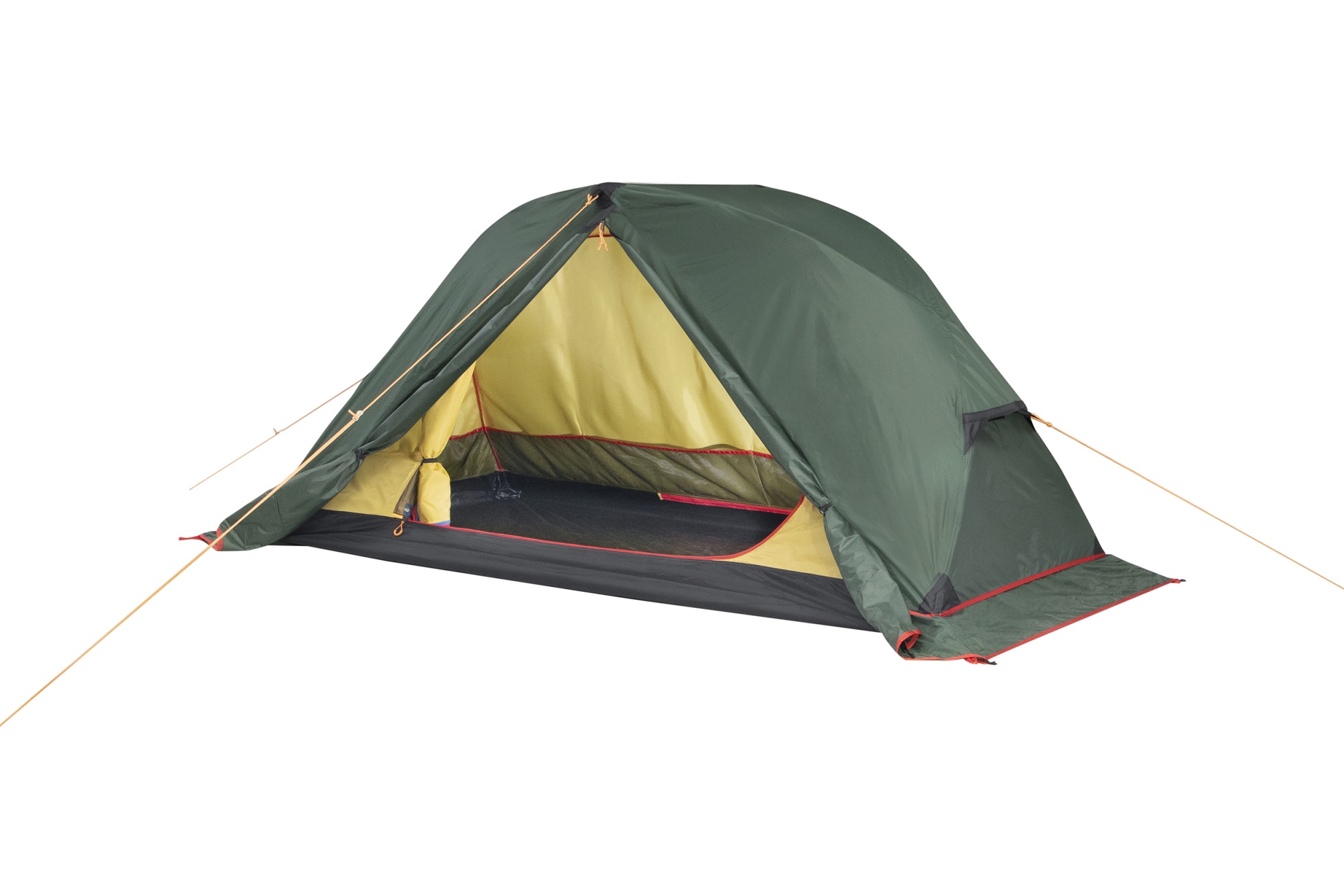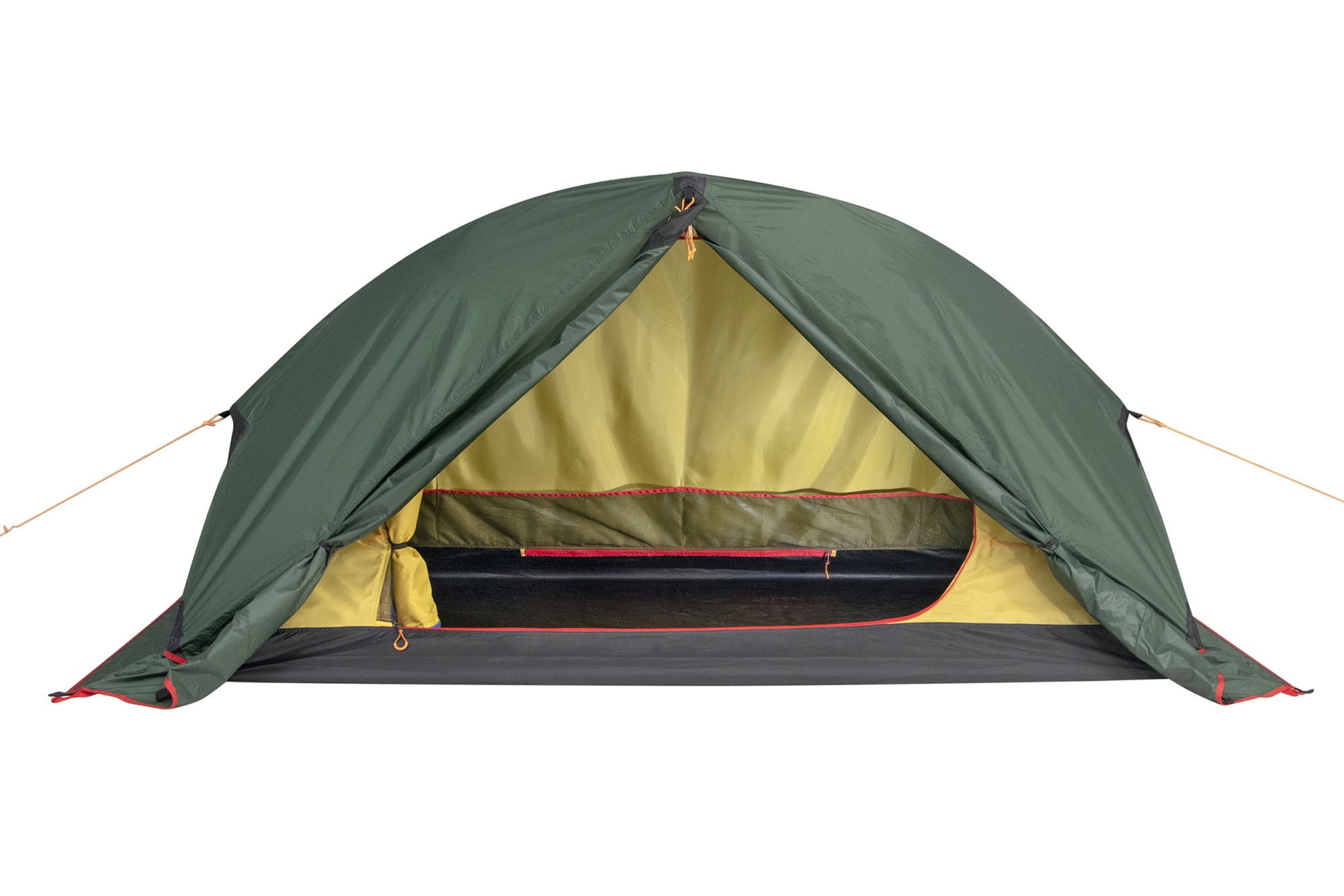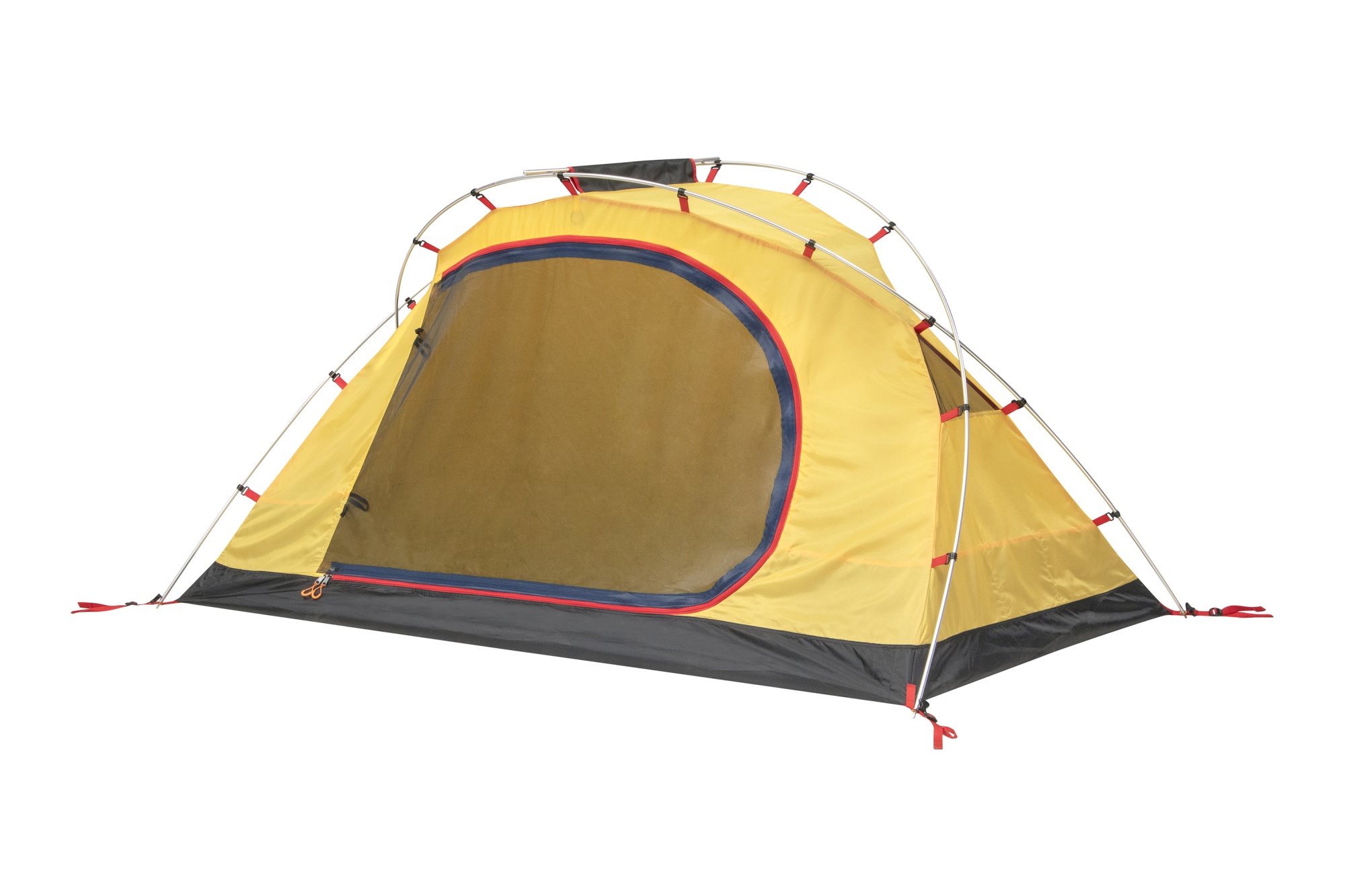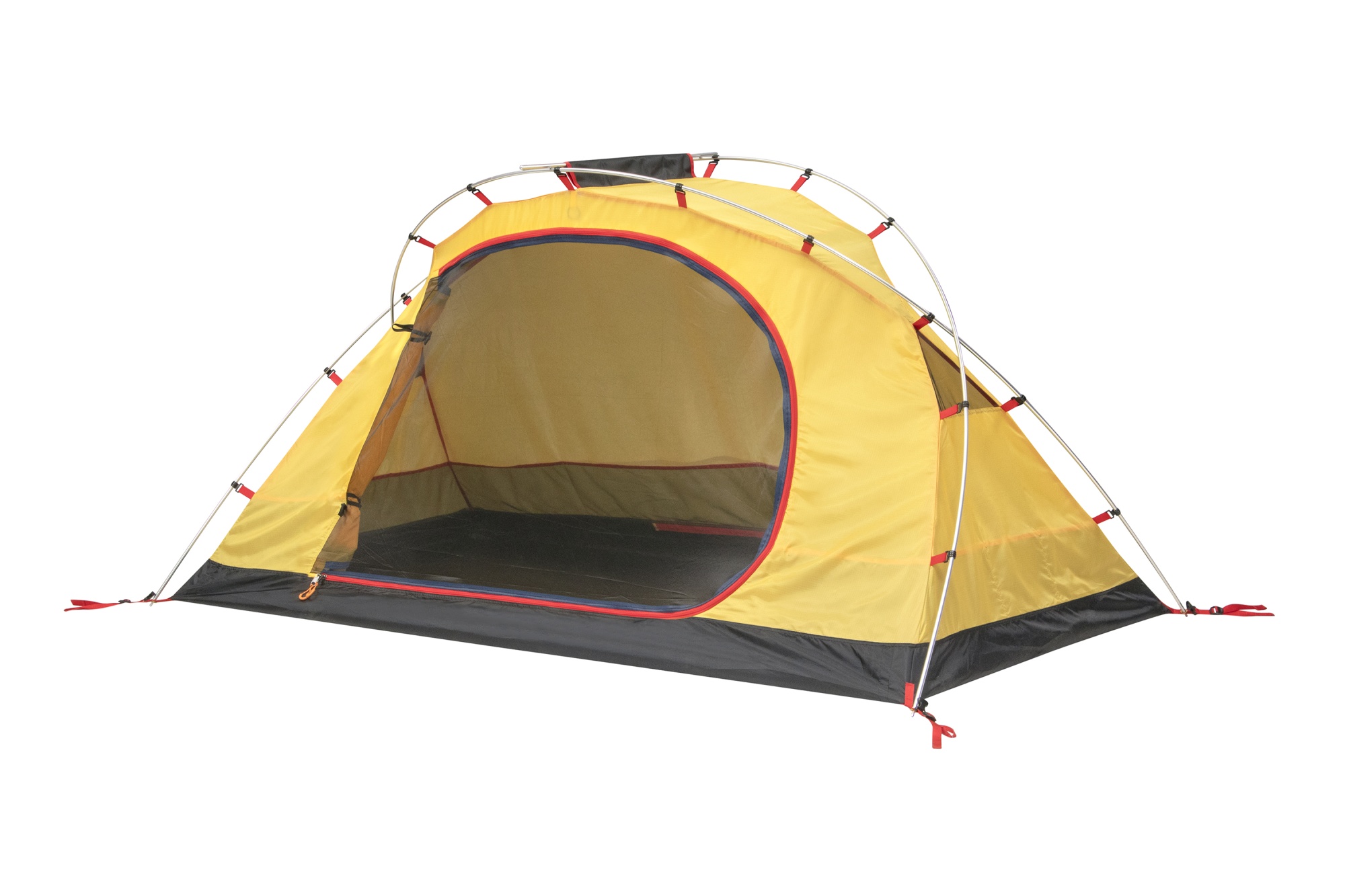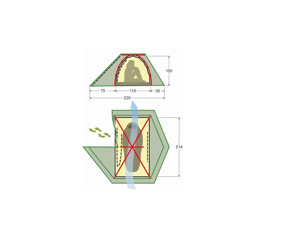 - На пологе входа во внутреннюю палатку две молнии. Красная молния открывает вход, а синяя - москитную сетку. Это необходимо для вашей безопасности.