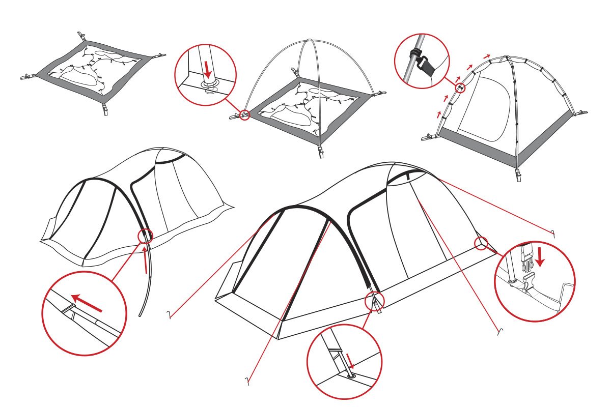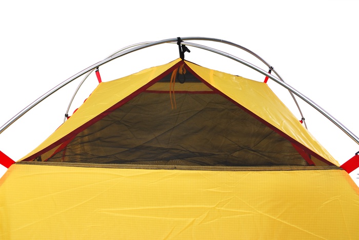 - Молнии на внешнем тенте фиксируются алюминиевым крючком, который снижает нагрузку на застегнутую молнию тента