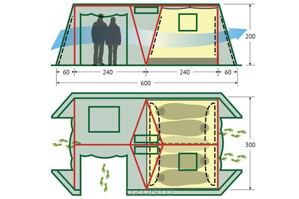 - Огромный тамбур, в котором можно разместить походную кухню и все необходимые вещи