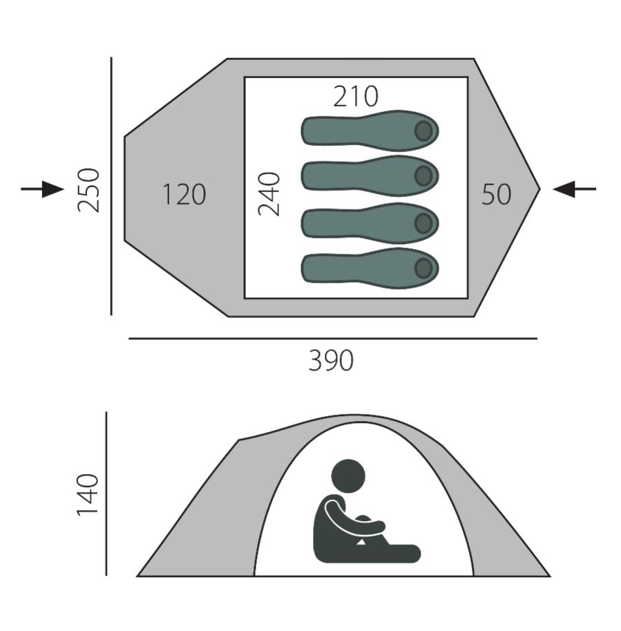 Тент: 100% Полиэстер 75D/190T RW PU 4000 мм в ст