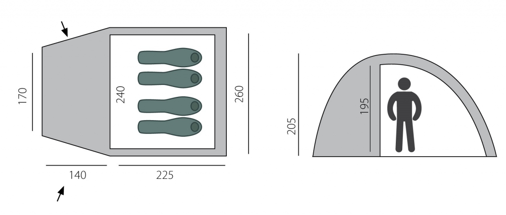 - Во внешнем тенте вход в тамбур продублирован москитной сеткой