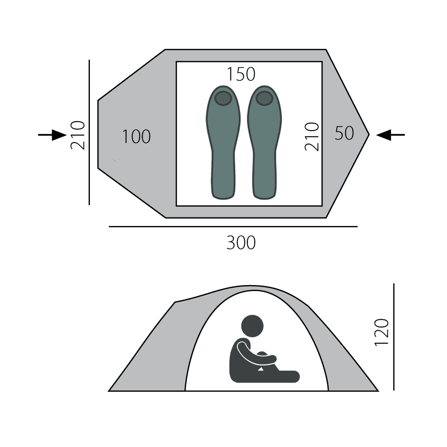Тент: 100% полиэстер 75D/190T Diamond RipStop PU, 6000 мм в ст
