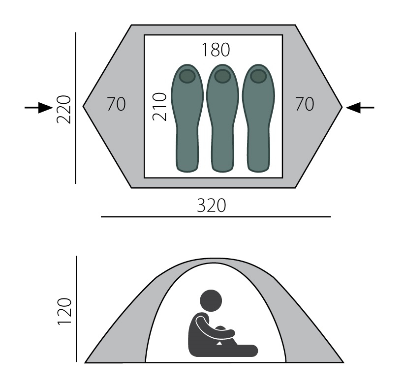Внутренняя палатка: 100% дышащий полиэстер