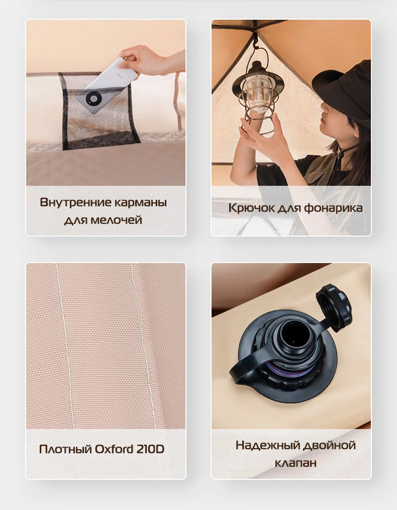 Материал тента: Oxford 210D WR PU 3000mm, Polyester AirMesh