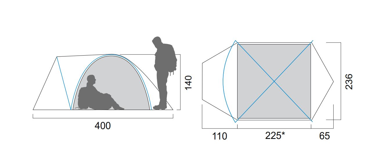 Размеры палатки*: (110+225+65) 400 х 235 х 140 см