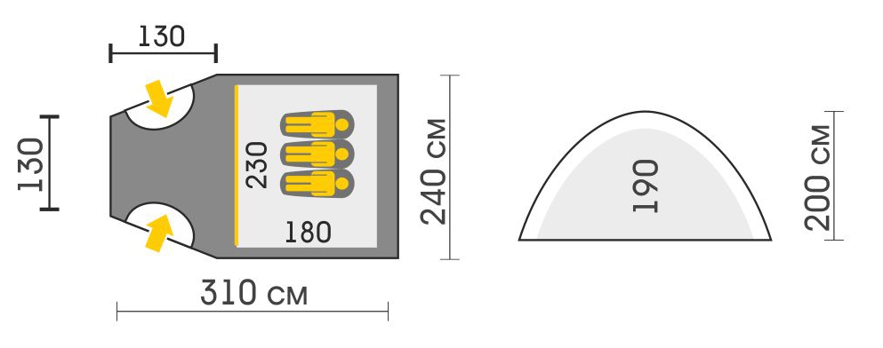 • Внутренняя палатка из «дышащего» Polyester обеспечивает отличную вентиляцию и испарение конденсата.