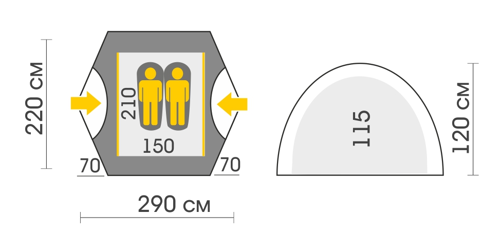 • Внутренняя палатка из «дышащего» Polyester обеспечивает отличную вентиляцию и испарение конденсата.