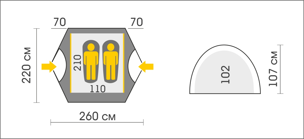 • Внутренняя палатка из «дышащего» Polyester обеспечивает отличную вентиляцию и испарение конденсата.