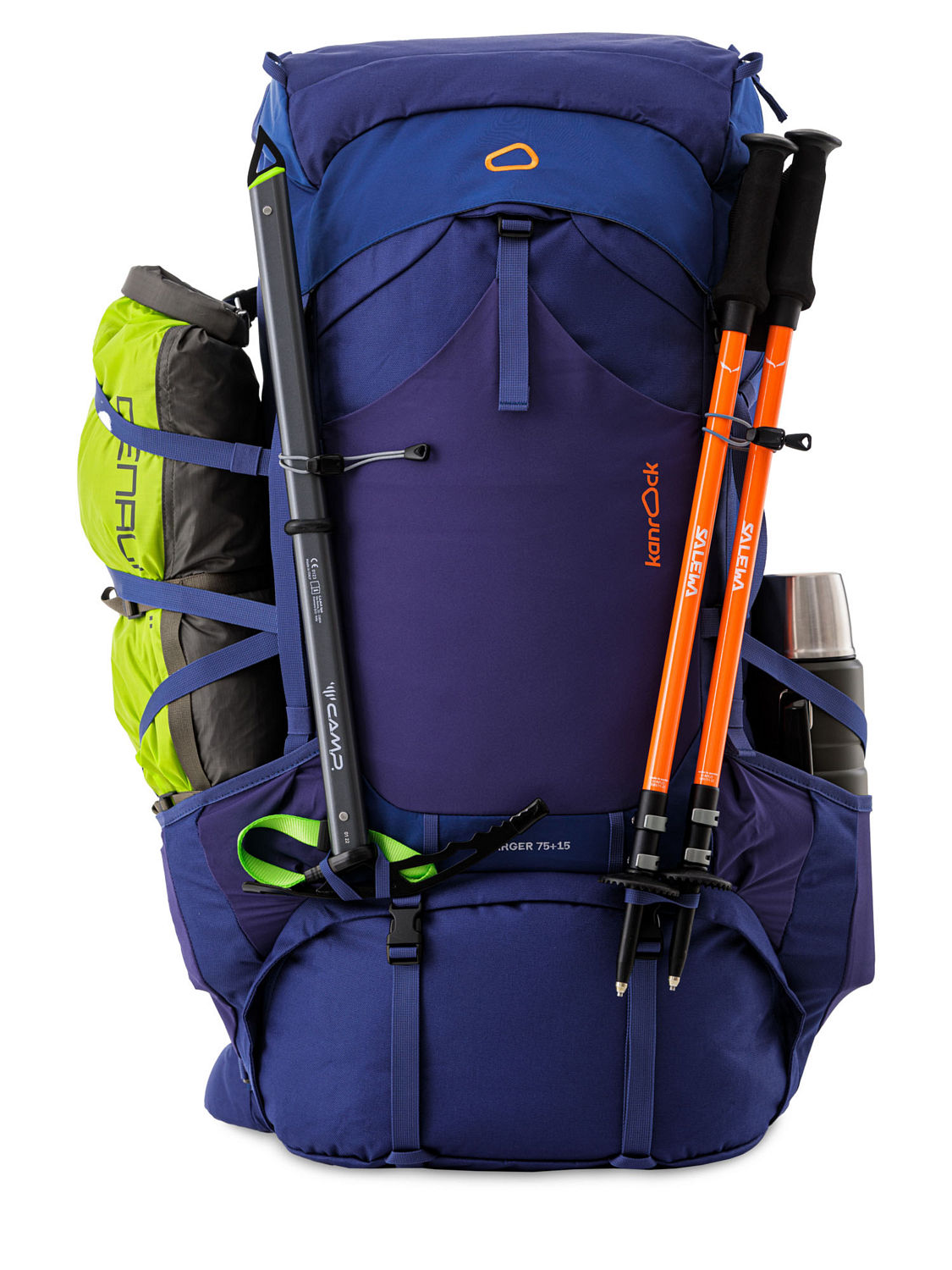 - На фасаде рюкзака предусмотрены крепления для треккинговых палок и ледоруба.