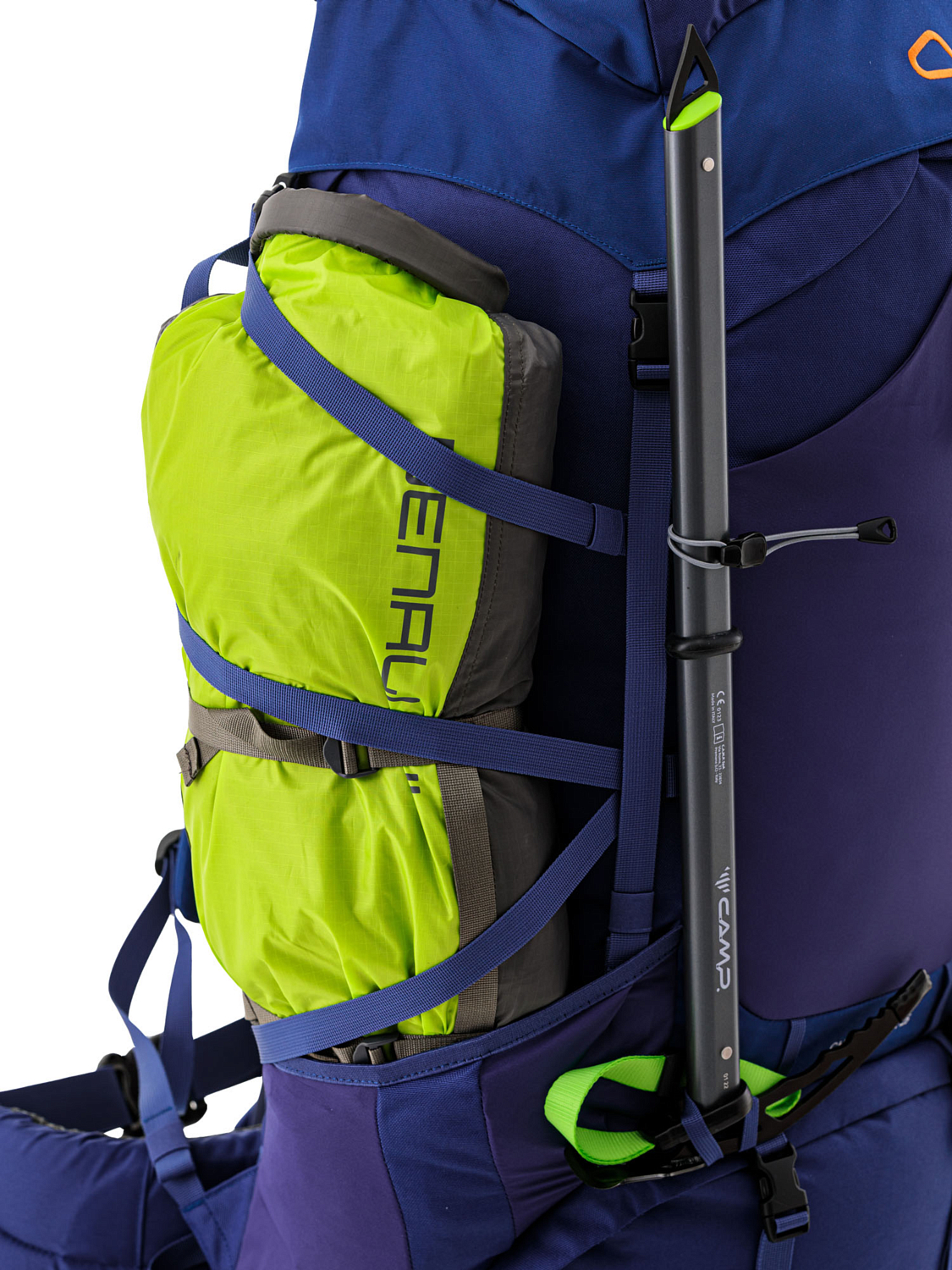- На фасаде рюкзака предусмотрены крепления для треккинговых палок и ледоруба.