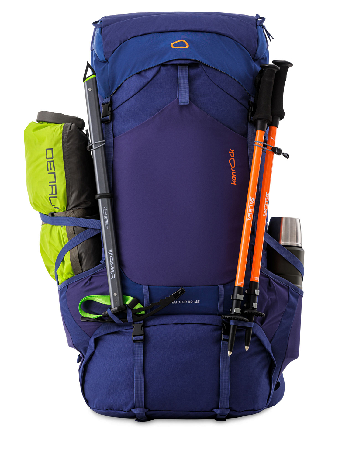 - На фасаде рюкзака предусмотрены крепления для треккинговых палок и ледоруба.