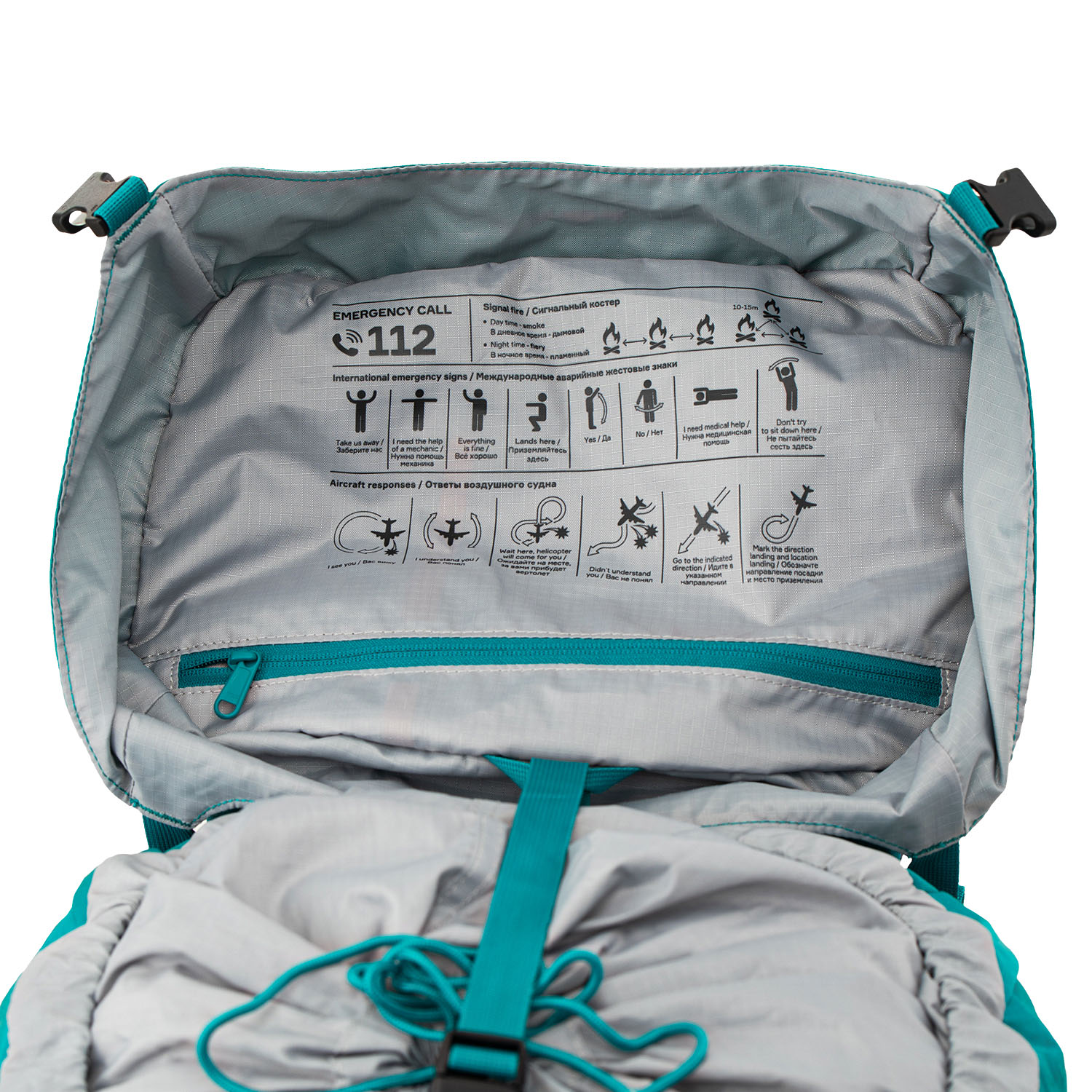 - На нижней стороне клапана рюкзака есть инструкция по подаче аварийных сигналов спасателям на русском и английском языках.