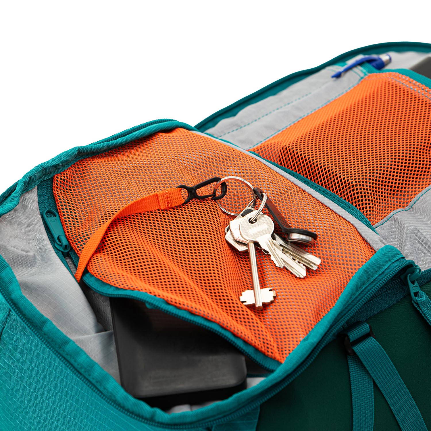 - Карман-органайзер для мелочей с отделениями для смартфона, пауэрбанка и с карабином для ключей.