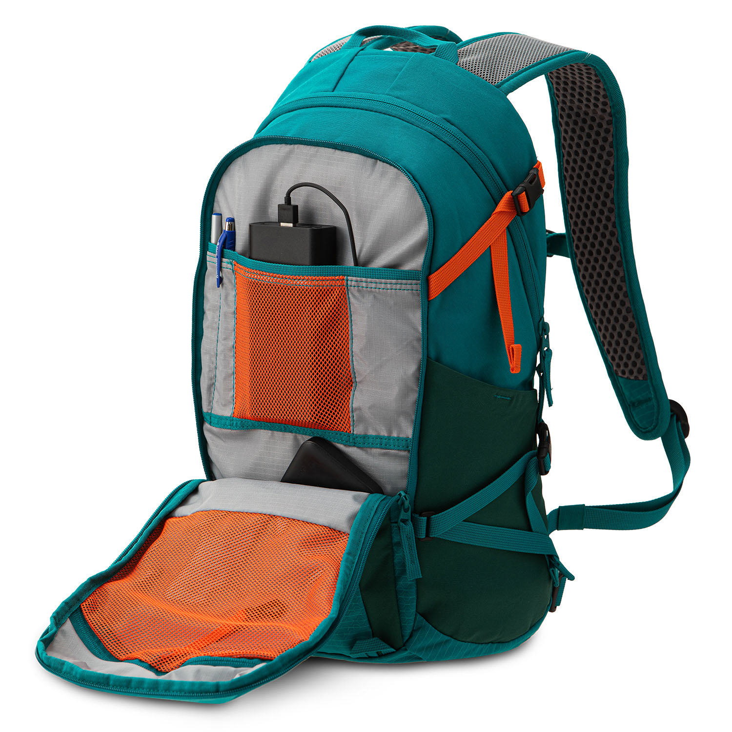 - Эластичный «кенгуру»-карман на фасаде рюкзака для ветровки.