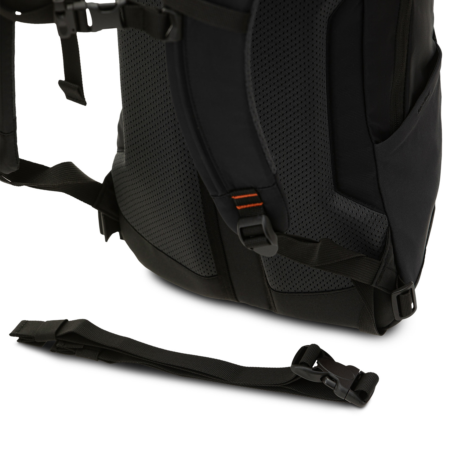 - Съёмный поясной ремень сделан из стропы и, будучи отстёгнутым, занимает минимум места внутри рюкзака.