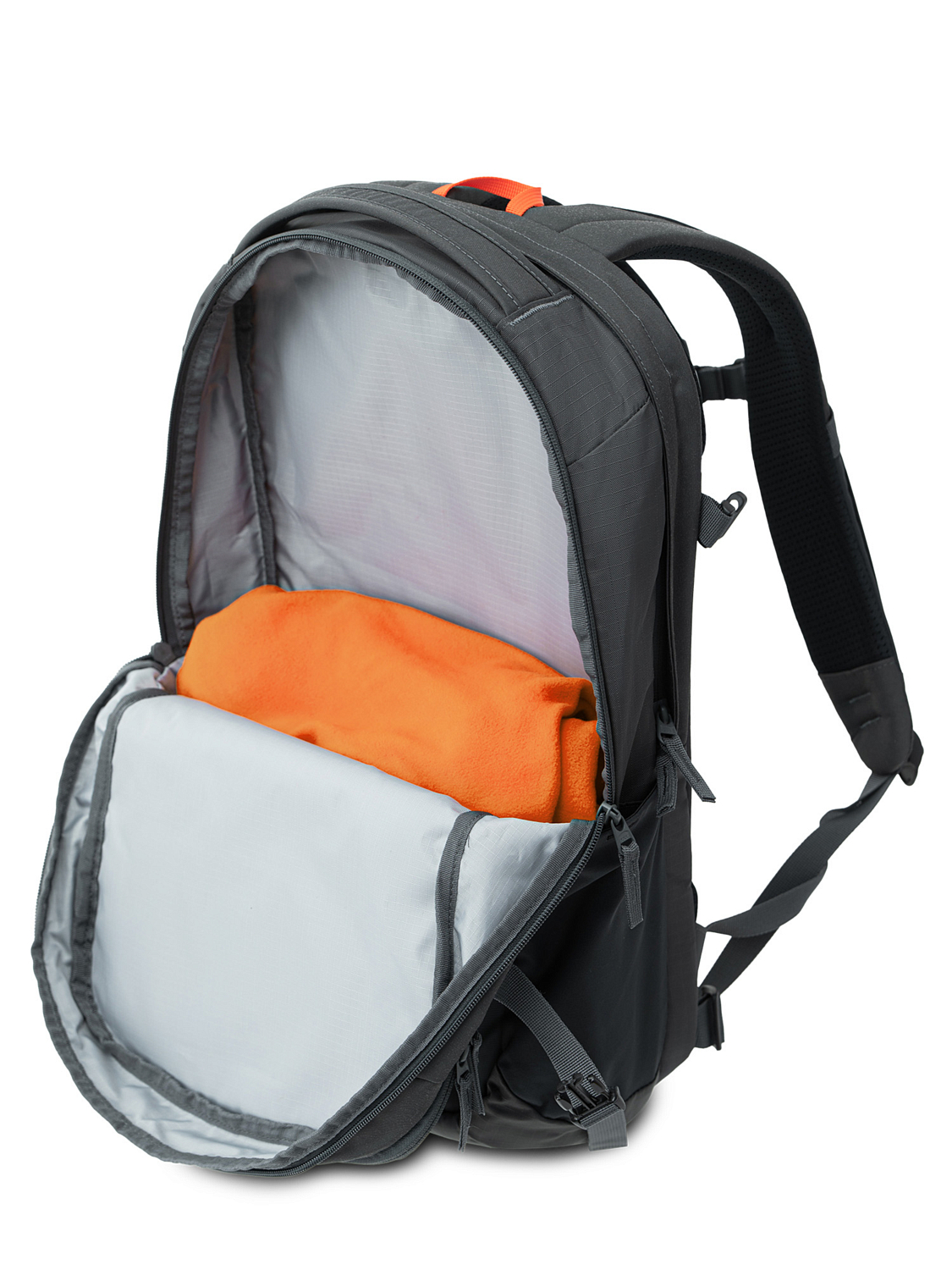 - Эластичный «кенгуру»-карман на фасаде рюкзака для ветровки.