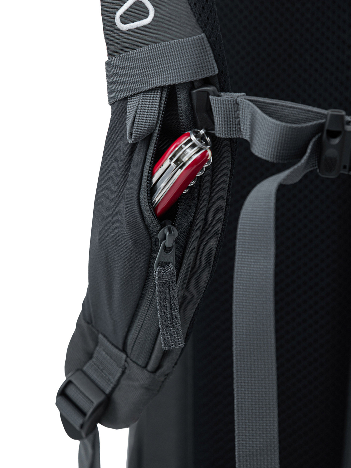 - Эластичный «кенгуру»-карман на фасаде рюкзака для ветровки.
