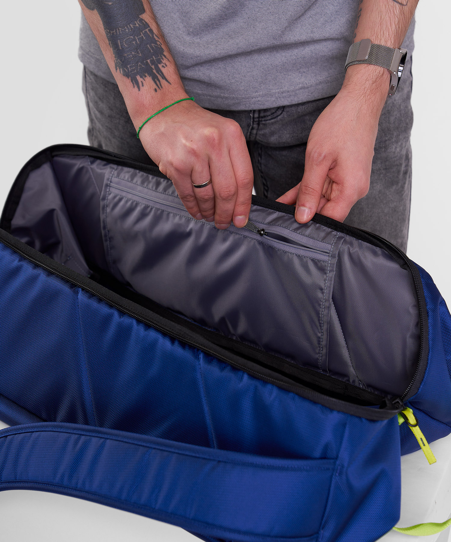 - Доступ в основное отделение на двухзамковой молнии со стороны спины