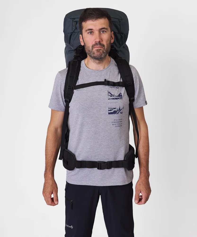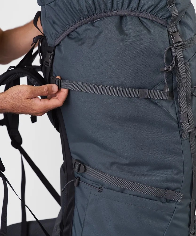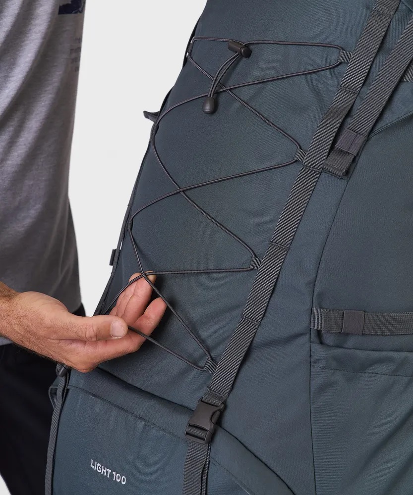- Эластичная стяжка на фронтальной части рюкзака для внешней подвески снаряжения