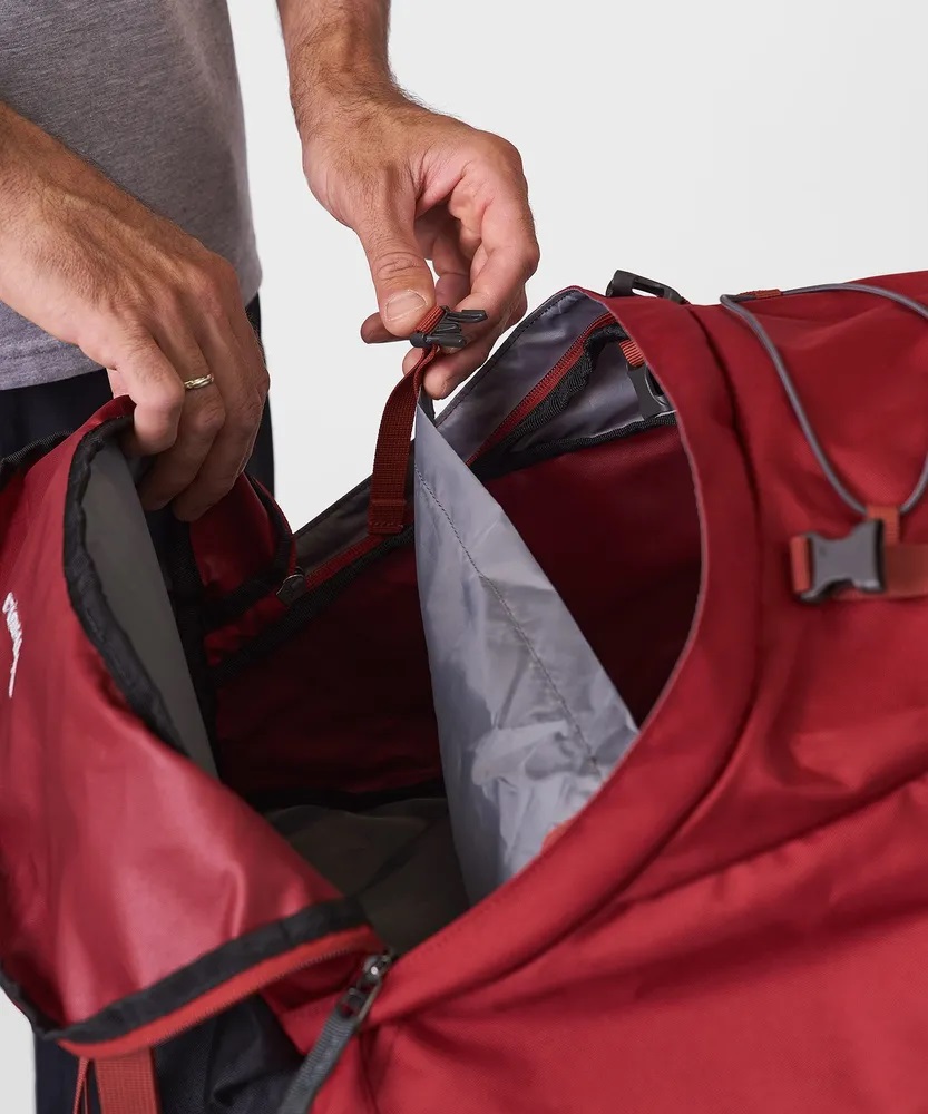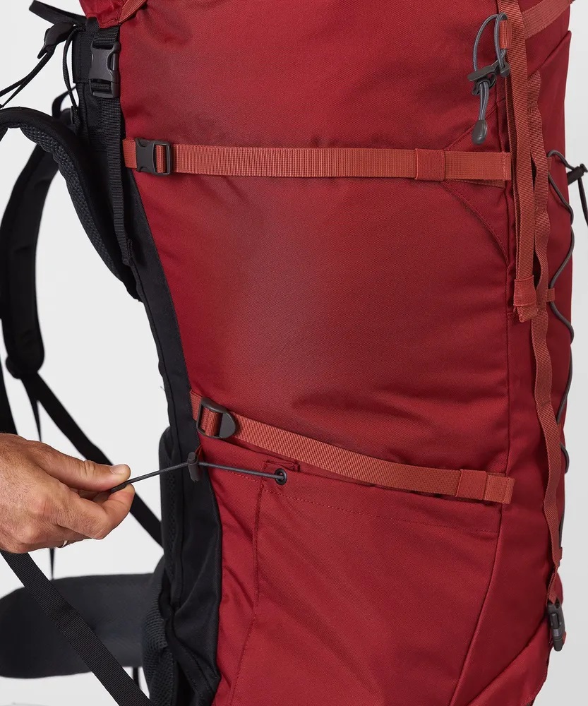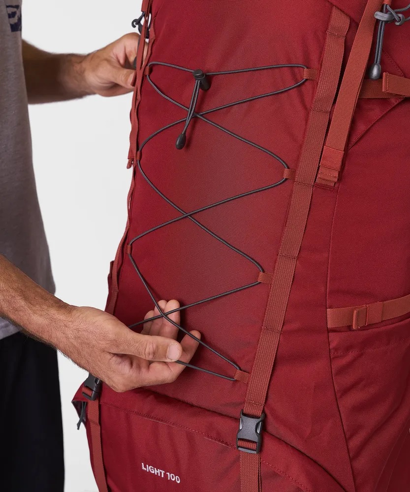 - Эластичная стяжка на фронтальной части рюкзака для внешней подвески снаряжения