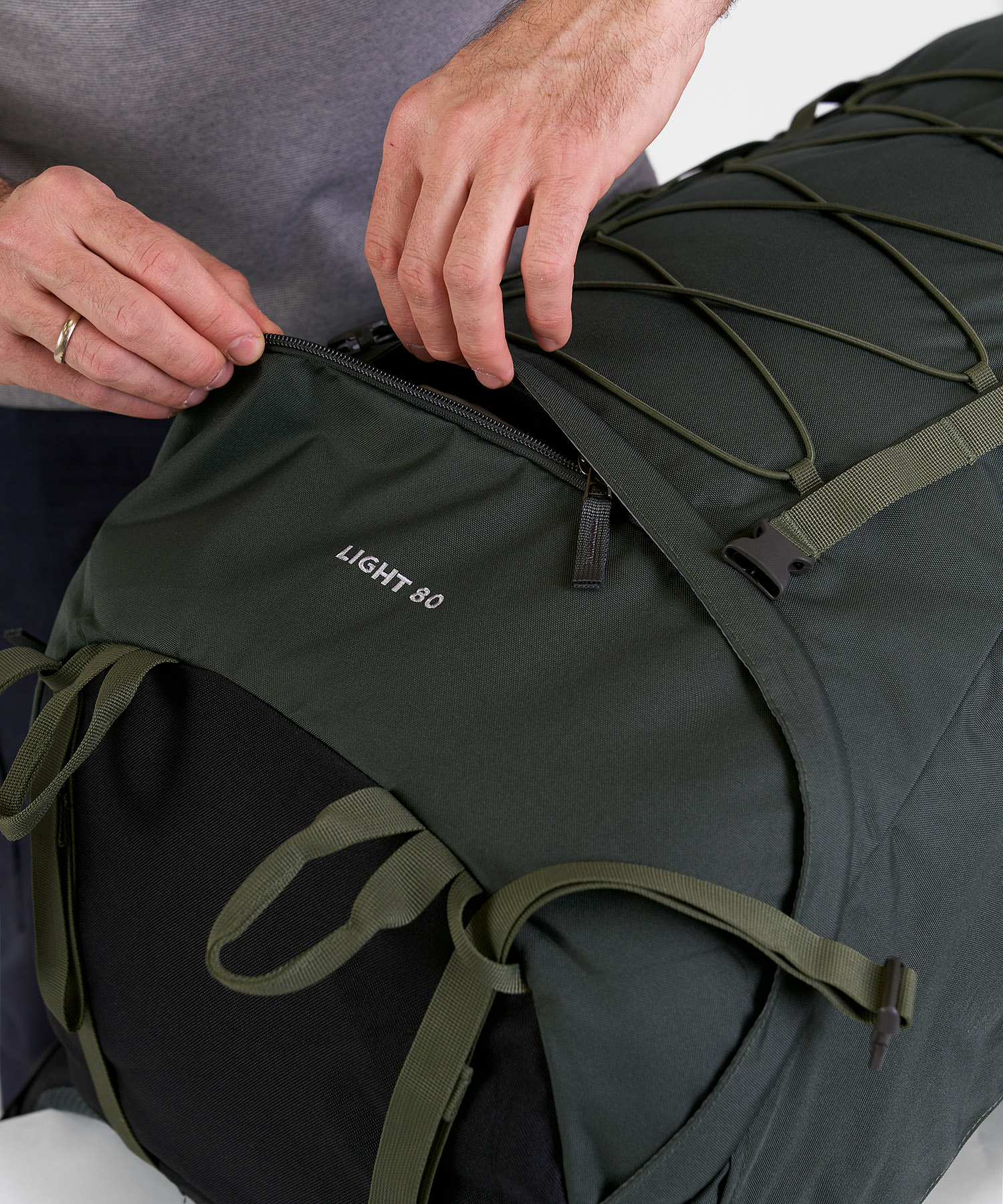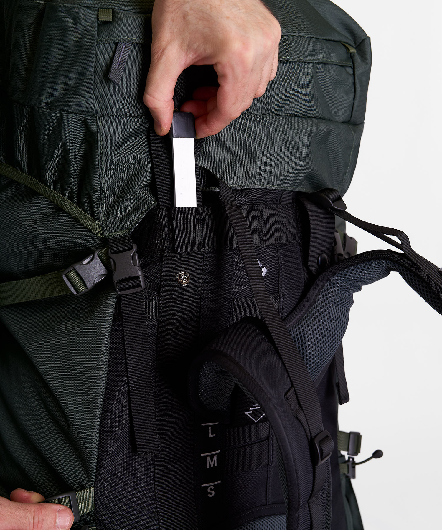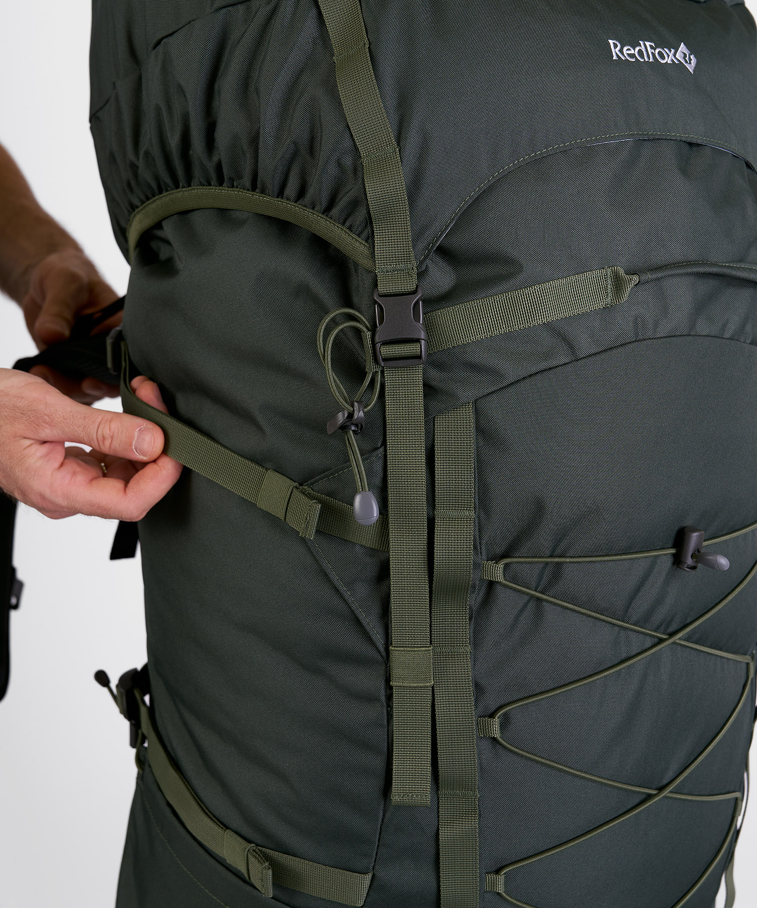 - Эластичная стяжка на фронтальной части рюкзака для внешней подвески снаряжения