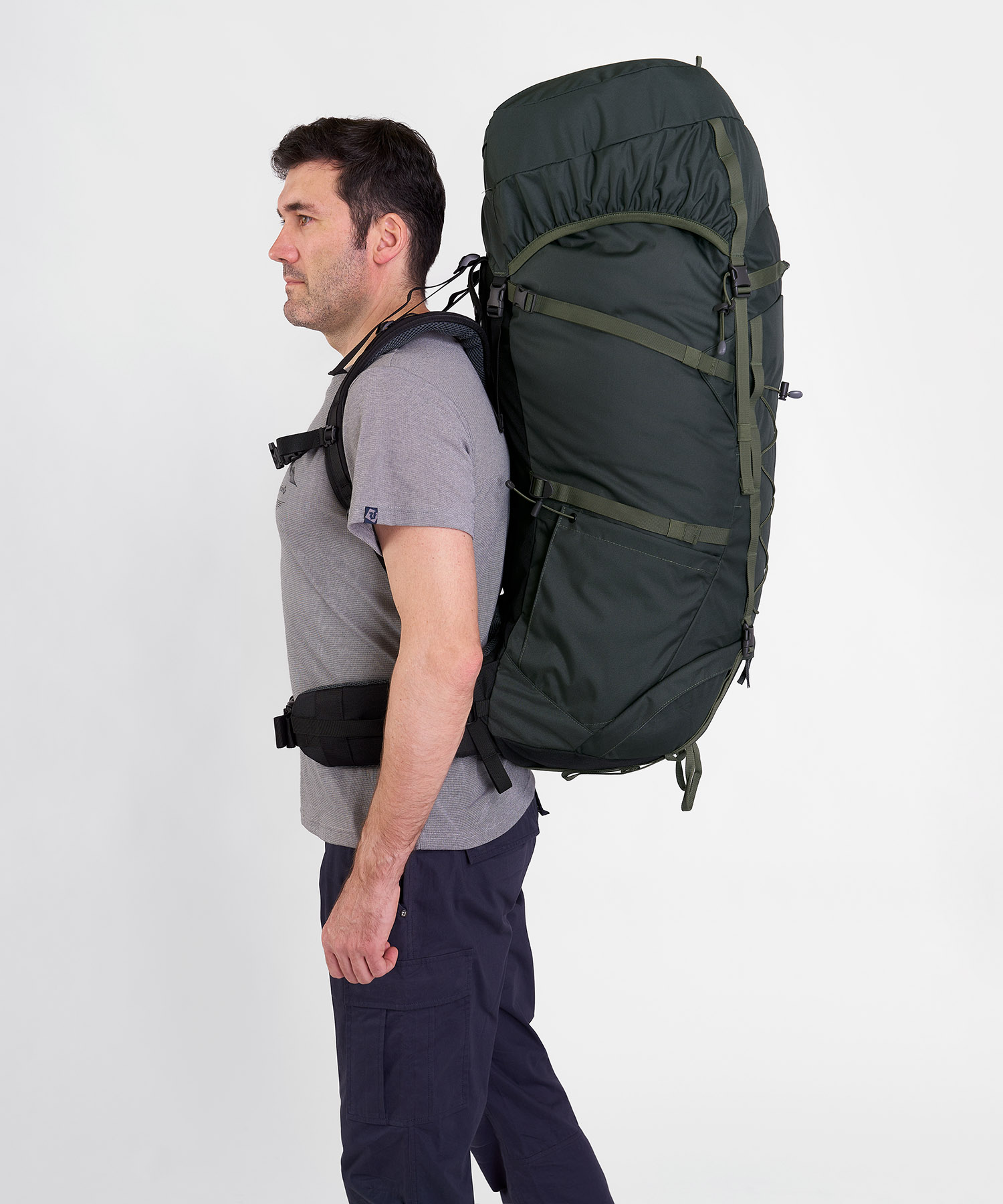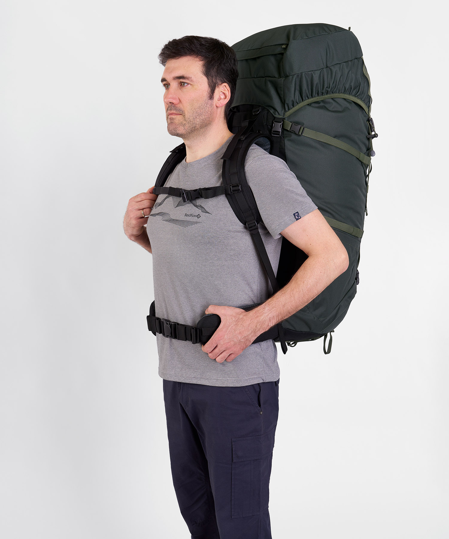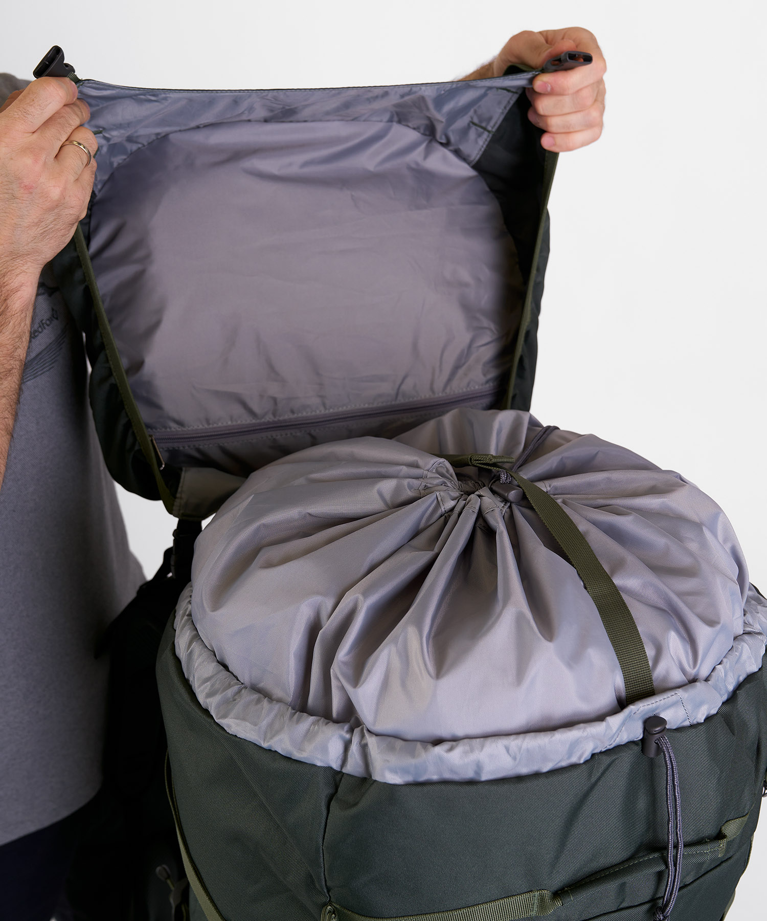 - Эластичная стяжка на фронтальной части рюкзака для внешней подвески снаряжения