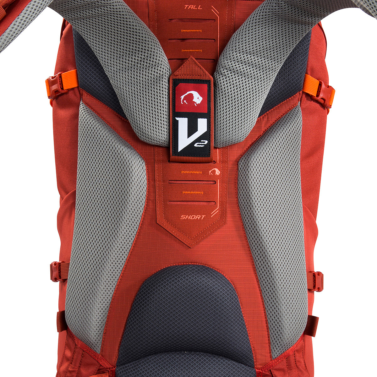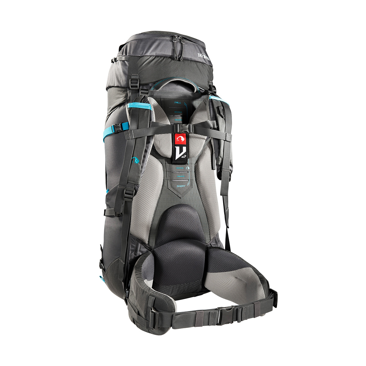 В рюкзаках Tatonka Yukon используется система подвески V2. Её основная задача - эффективно перераспределить 70-80% всей массы рюкзака на трехсекционный эргономичный набедренный ремень при помощи рамы из двух алюминиевых шин в виде перевернутого «V» и двух коротких стержней из стекловолокна. Это значительно уменьшает нагрузку на позвоночник и понижает центр тяжести системы, что улучшает устойчивость при передвижении. Остальные 20-30% приходятся на плечевые ремни анатомической формы с возможностью регулировки под различный рост.