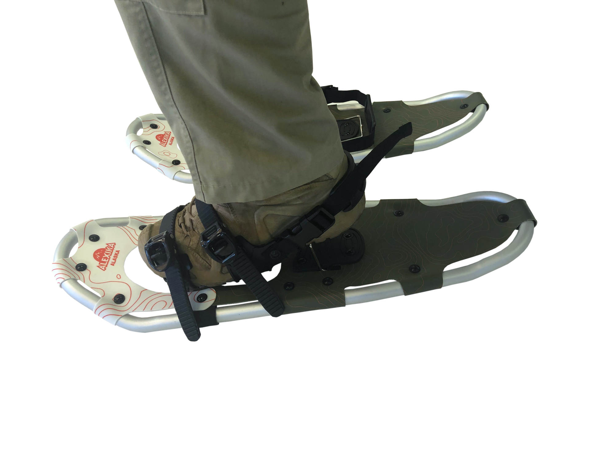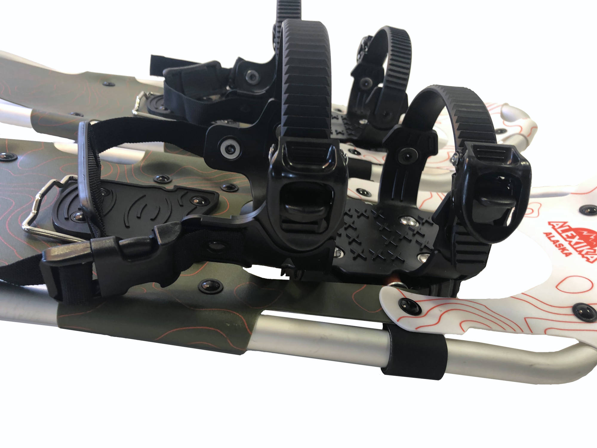 • Double Ratchet Buckle System: Снегоступы Alaska имеют систему фиксации обуви с двойным храповым механизмом. Позволяет настроить степень обхвата разного объёма обувь, и в тоже время рычагом ослабить фиксацию при необходимости