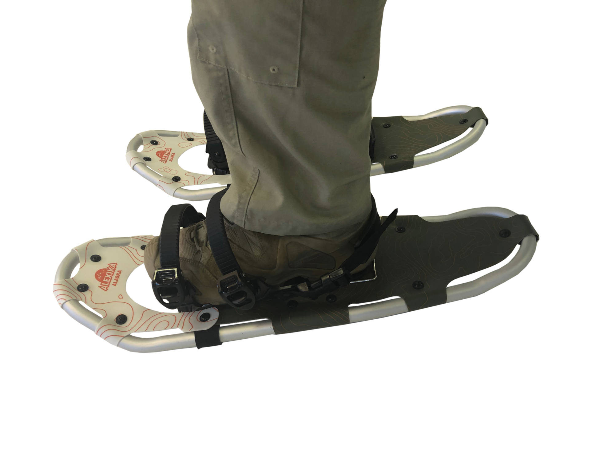 • Снегоступы Alaska снабжены кошками из нержавеющей стали, которые обеспечивают надёжную фиксацию ног на обледенелых участках маршрута