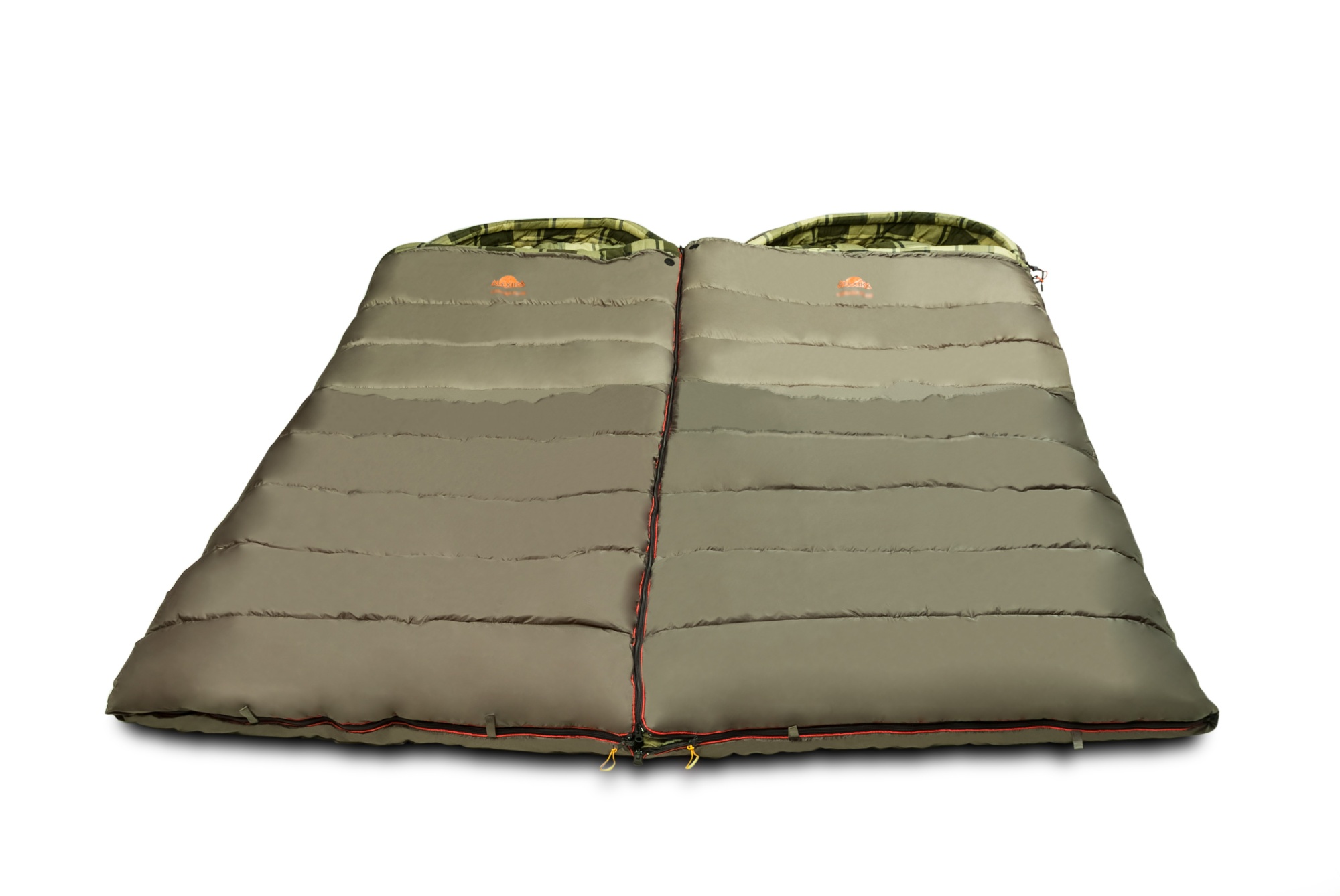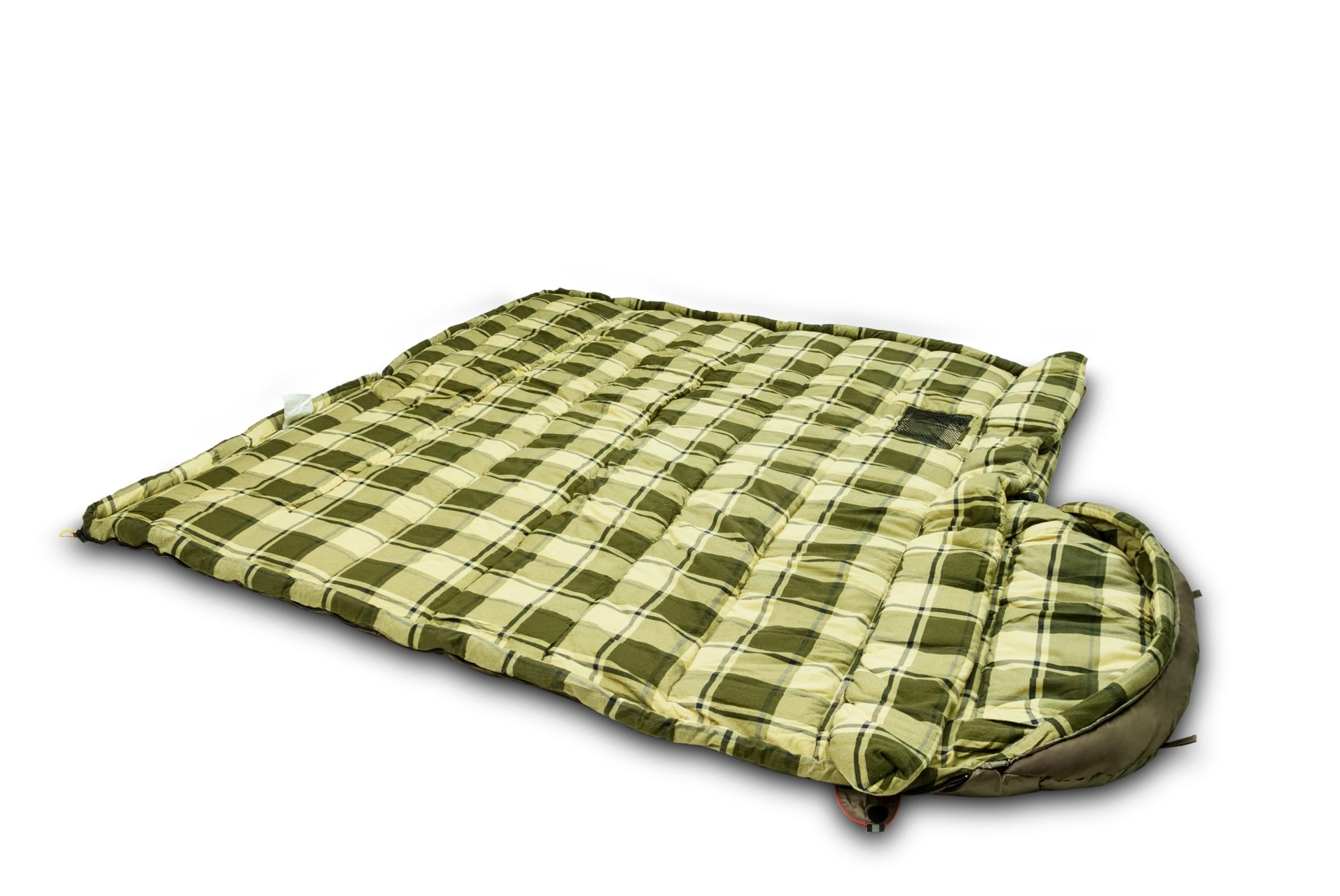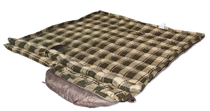 Ширина спальника - один метр, длина - почти два метра, а подголовника - 35 см. В таком спальнике можно спать как в домашней кровати, не упираясь коленями в боковую молнию. Внутри спальника никакой холодной синтетики, только высококачественная 100% хлопковая шелковистая фланель.