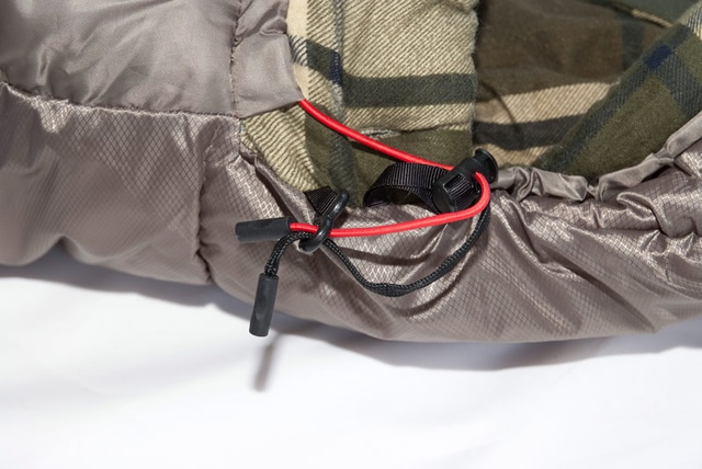 - Затяжки капюшона фиксируются крючком на внешней стороне спального мешка, чтобы при перевороте на бок шнуры не ложились на лицо.