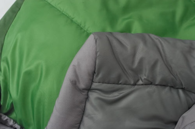 Внешняя оболочка спальника, испытывающая высокие нагрузки на истирание и агрессивное влияние внешней среды (ветер, капли конденсата), производится из прочной полиэстровой (Polyester 190T) ткани, усиленной плетением RipStop Diamond и покрытой с внешней стороны пропиткой WR, а с внутренней стороны - слоем полиуретана с водонепроницаемостью не менее 250 мм водяного столба (это практически легкая мембрана). Такая ткань прочна и защитит вас от сквозняков и влаги.