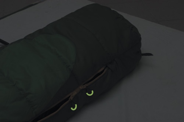 - Пластиковый крючок фиксирует шнуры затяжек с внешней стороны спальника