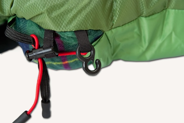 – Затяжки фиксируются крючком на внешней стороне спального мешка, чтобы при перевороте на бок шнуры не ложились на лицо.