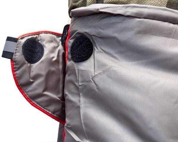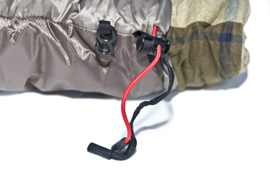 - Пластиковый крючок фиксирует шнуры затяжек с внешней стороны спальника