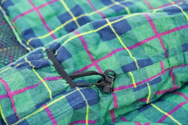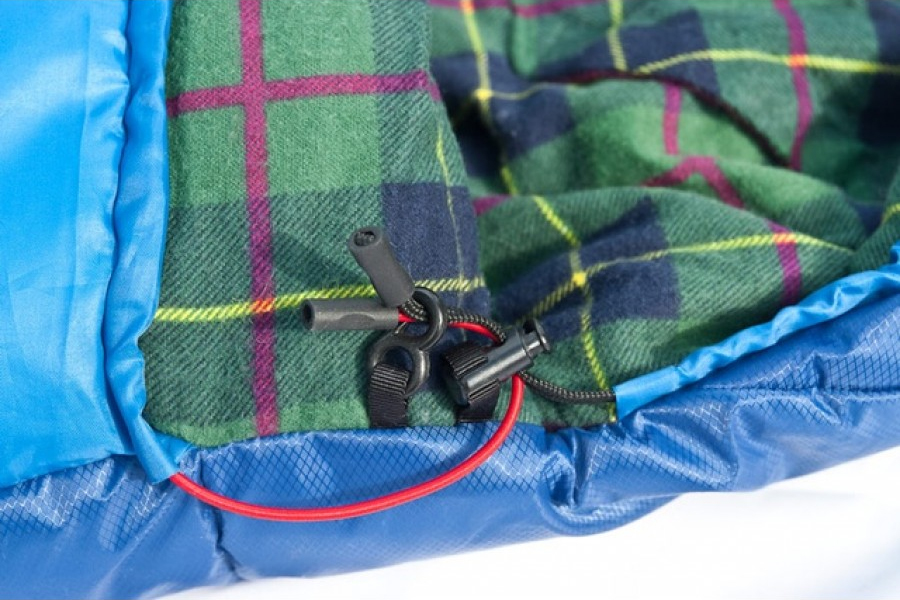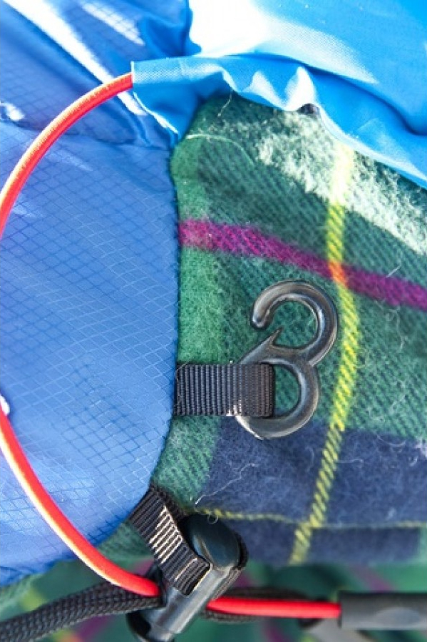 - Пластиковый крючок фиксирует шнуры затяжек с внешней стороны спальника