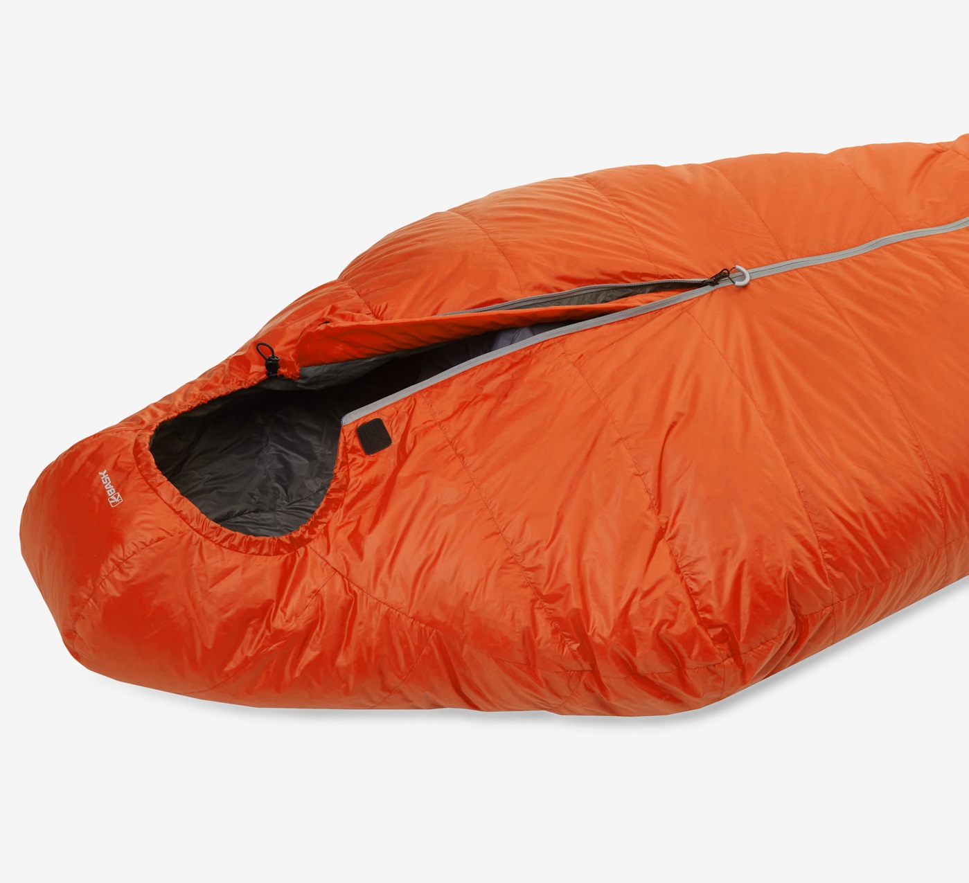 В спальнике применяется высококласный гусиный пух DSD DWR (95/5). Маркировка DSD DWR обозначает, что пух дополнительно прошёл специальную обработку для придания ему влагостойких свойств (durable water repellent). Пух DSD DWR обладает значительной влагостойкостью, не вызывает аллергию, сохраняет тепло даже во влажном состоянии. Изделие с данным видом утеплителя быстрее сохнет и набирает существенно меньше влаги, чем изделие с обычным пухом. При обработке пуха не использовались фосфонаты (PFCs free). Внешний материал спальника - Graphene Light Downproof. Легкая пуходержащая ткань с графеном для высотных пуховок и спальников. Графен способствует равномерному распределению тепла в материале и снижает статический заряд в нём. Плотное плетение и каландрирование, исключают миграцию пуха и сохраняют тепло. Ткань обработана стойкой водоотталкивающей DWR пропиткой. Внутренний материал - BASK Light Downproof. Это пуходержащая ткань из полиамида для легких спальников и пуховок, обладает прочностью и ветрозащитой. Плотное плетение микроволокон и горячее каландрирование исключают миграцию пуха и позволяют избежать конвективных теплопотерь, более эффективно используя свойства утеплителя. BASK использует в своих изделиях прочные и надёжные молнии производства японской компании YKK, славящейся стабильным качеством и безупречной репутацией.