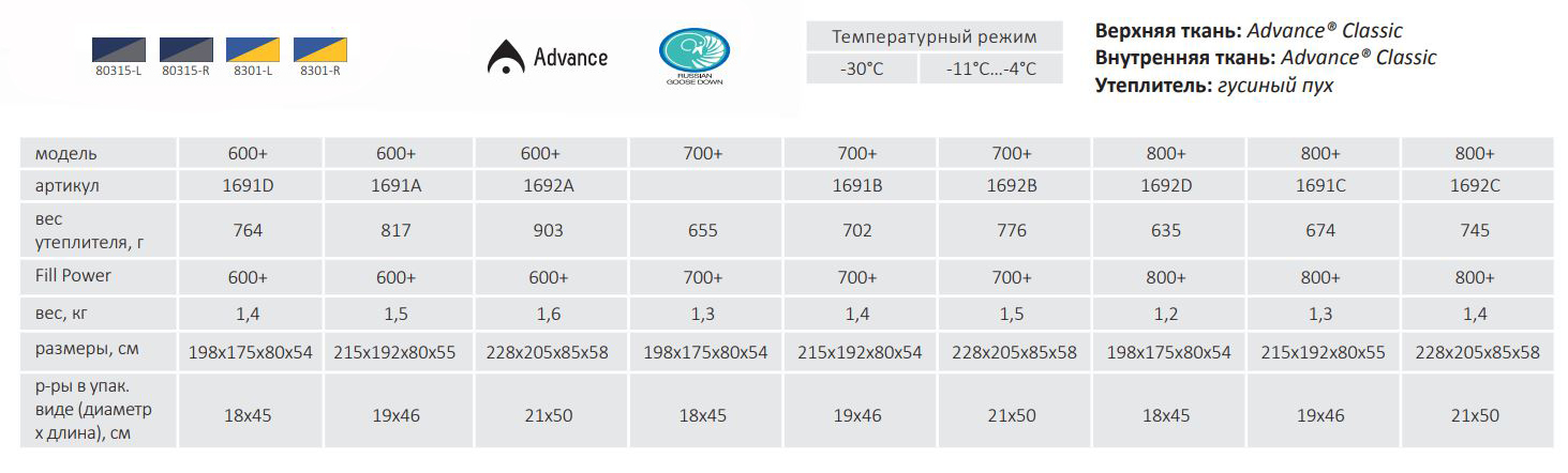 Пуховый спальный мешок для экстремальных условий. Существует в нескольких вариантах, каждый из которых рассчитан на эксплуатацию при температурах до –30°С. Предназначен для альпинизма и горного туризма, отвечает высоким стандартам БАСК. Левый и правый варианты спальника состёгиваются, регулируемые большой капюшон и тёплый шейный пакет не дают холодному воздуху проникнуть внутрь. Тесьма вдоль планок не даст ткани попасть в молнию. Утепление молнии пуховой планкой, окончание молнии фиксируется клапаном с Velcro®. Два внутренних кармана. Спальник протестирован по стандарту EN 13537. Выпускается с пуховым наполнителем разного качества и в разных размерах.