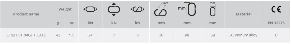 Сертификаты: CE - EN 12275, 362, UIAA 121