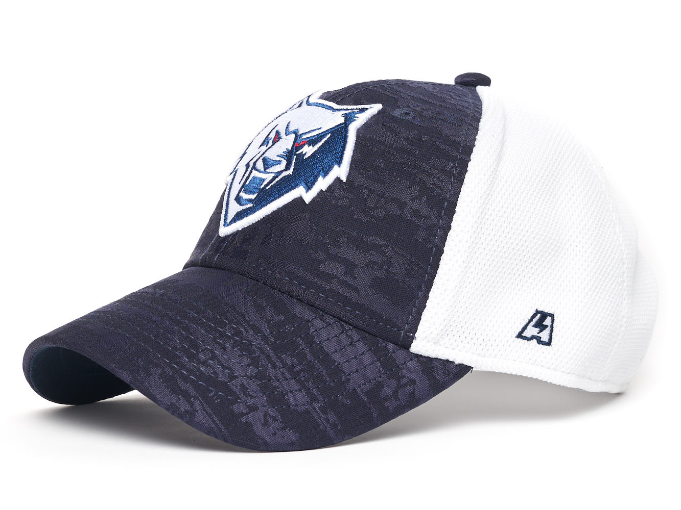 Элементы: объемная вышивка логотипа команды, металлический фиксатор с логотипом.